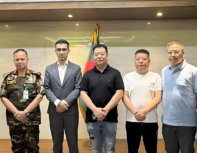 DHAKA, 20 avril 2025 - Une délégation de Ruian Jinwangda Bags & Leather Goods Co., Ltd. (JWD) a eu des pourparlers constructifs aujourd'hui avec M. Ashik, président de la Bangladesh Investment Development Authority (BIDA), et le major général Nasim de l'armée du Bangladesh à Dhaka. La réunion a servi de plate-forme pour le dialogue ouvert concernant les opportunités d'investissement potentielles et le climat d'investissement propice au Bangladesh.